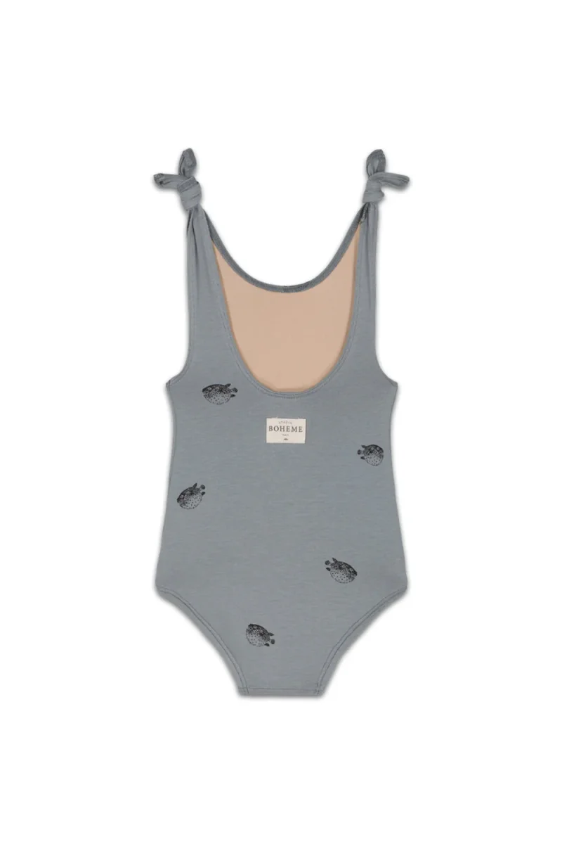 Maillot de Bain Une Pièce Roberta Poisson Boule Bleu Gris