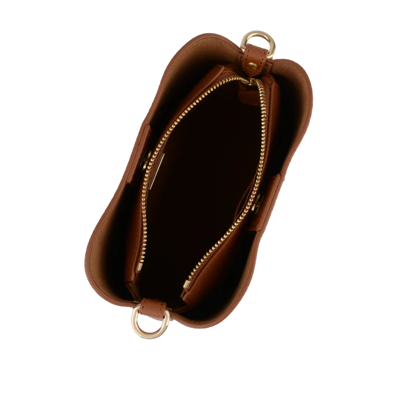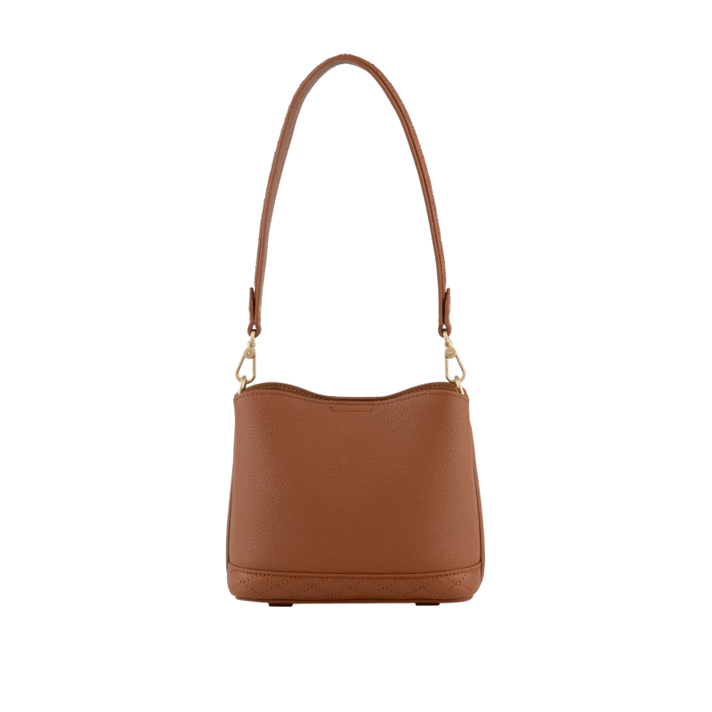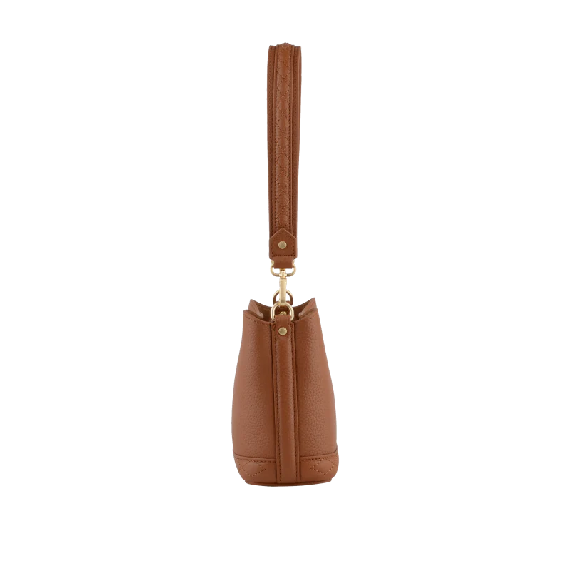 Fabriqué en cuir de vachette texturé, ce sac offre une sensation de qualité et de durabilité. Sa texture légèrement grainée ajoute une touche d’élégance et de raffinement. Avec une silhouette arrondie et compacte, il est conçu pour être porté à l’épaule grâce à une anse large et courte en cuir, ainsi qu’une longue anse réglable pour un porté de travers confortable.