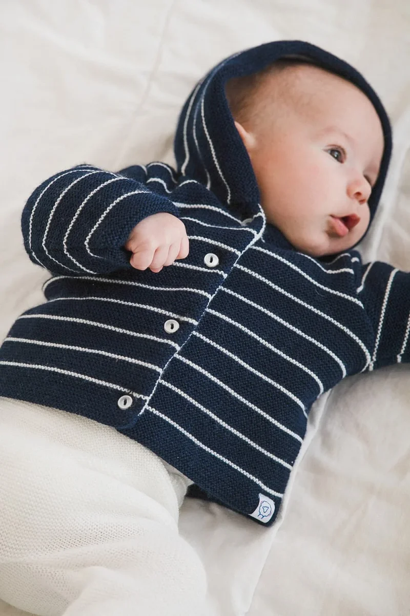 Un joli manteau en tricot pour bébé, doublé, avec capuche, il est le parfait compagnon de votre bébé pour profiter du grand air. Ce manteau en tricot est réalisé en acrylique ce qui garanti la douceur et le confort de votre bébé. Le manteau pour bébé est tricoté en France dans notre atelier et se décline en six coloris.