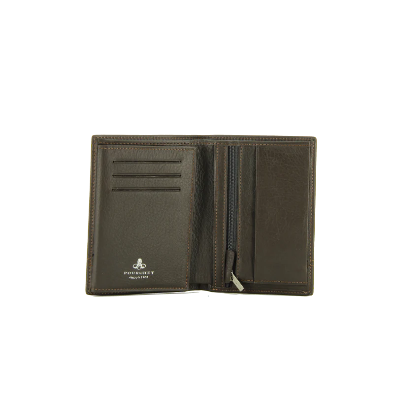 Le portefeuille marron de la marque Pourchet est un accessoire alliant élégance et praticité. Fabriqué en cuir de vachette, ce portefeuille se distingue par sa texture légèrement grainée qui lui confère une allure sophistiquée.