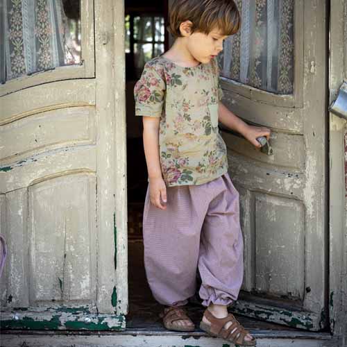Joli pantalon pour bébé et enfant, 100% coton, taille élastique, resserré sur le bas.
