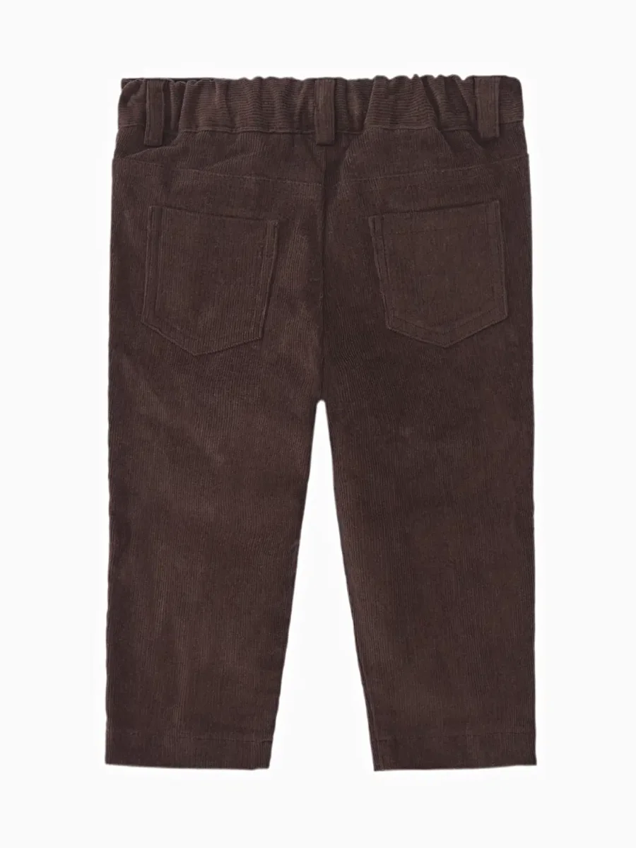 Les poches avant et arrière fonctionnelles ajoutent une note pratique et authentique à ce pantalon en velours côtelé marron clair, permettant à votre enfant de garder ses petits trésors lors des promenades ou des moments en famille. Sa coupe droite classique apporte une silhouette soignée, tout en restant confortable à porter chaque jour.