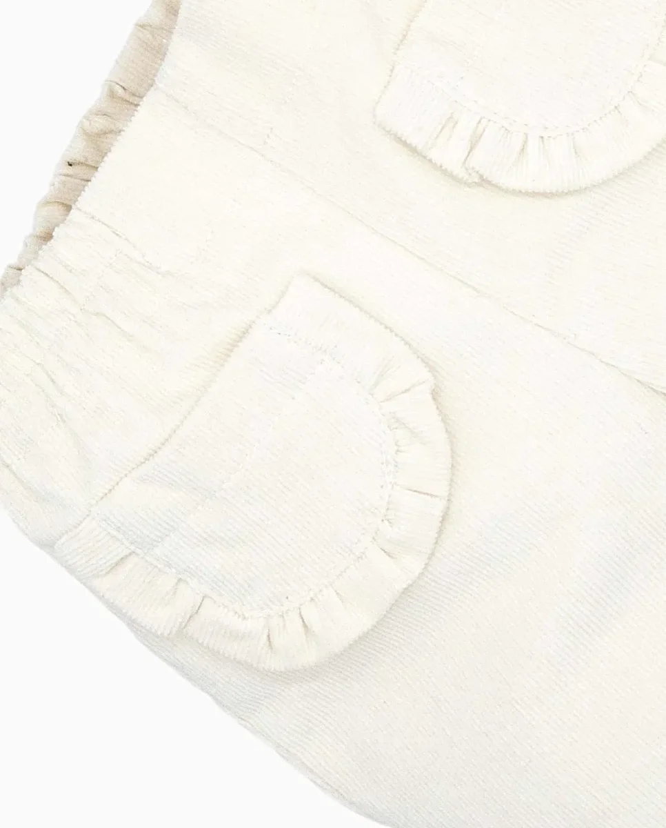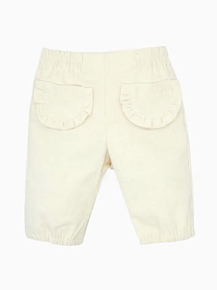 Ce pantalon bébé fille en velours côtelé crème se prête à de multiples associations. Vous pouvez le combiner avec une blouse légère ou un cardigan bordé pour une allure élégante et intemporelle. C’est l’essentiel incontournable dans la garde-robe de votre bébé, un incontournable qui traverse les saisons avec raffinement.