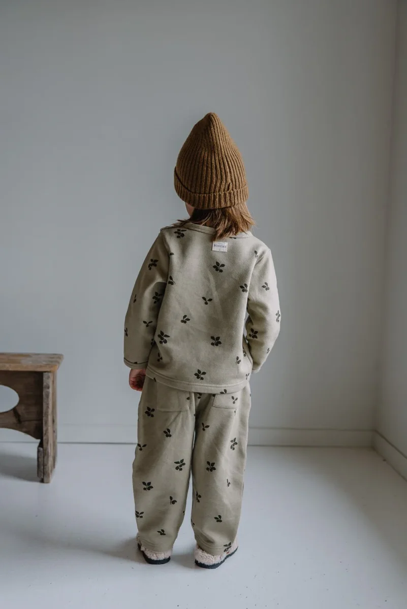 Pantalon large forme carotte mixte et très confortable. En molleton de coton biologique ultra cosy.