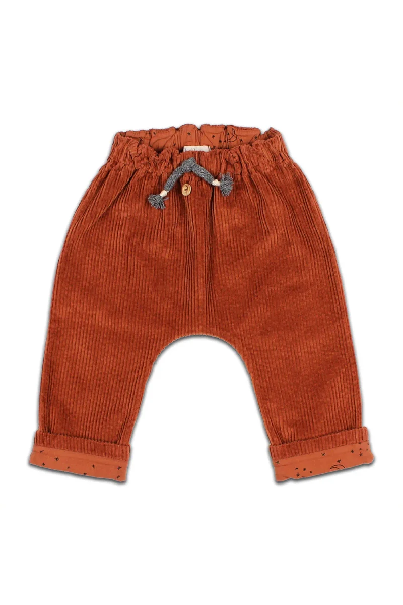 Pantalon en Velours Corduroy avec Cordelette Rouille