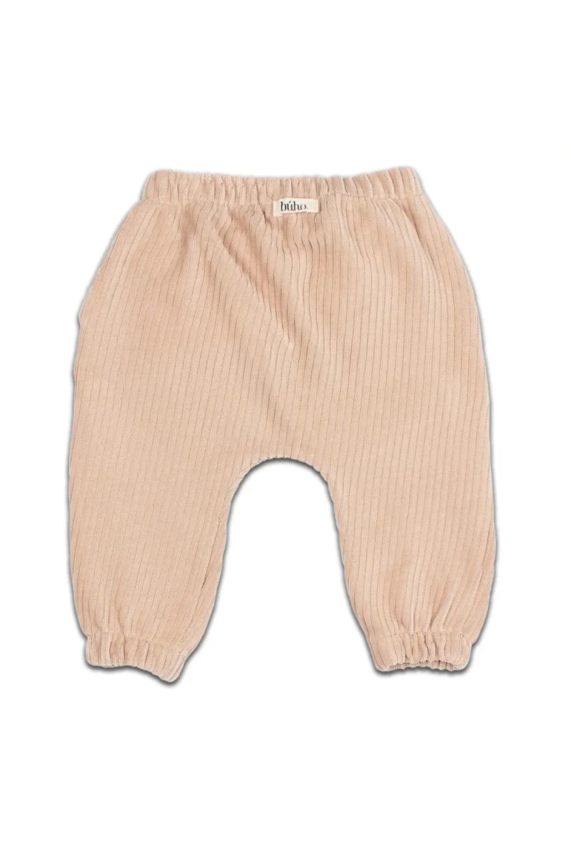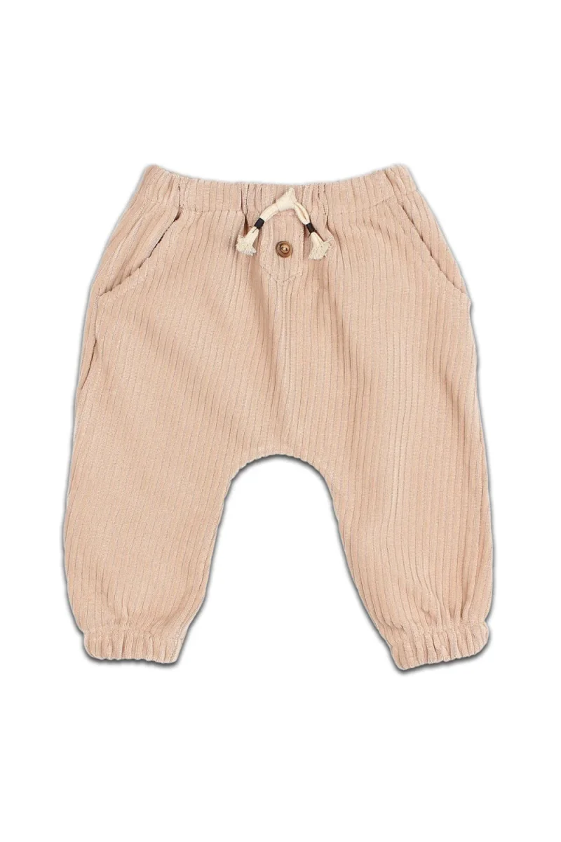 Pantalon en velours côtelé. Taille élastique avec cordon décoratif. Bouton en bois décoratif. Très chaud et confortable.