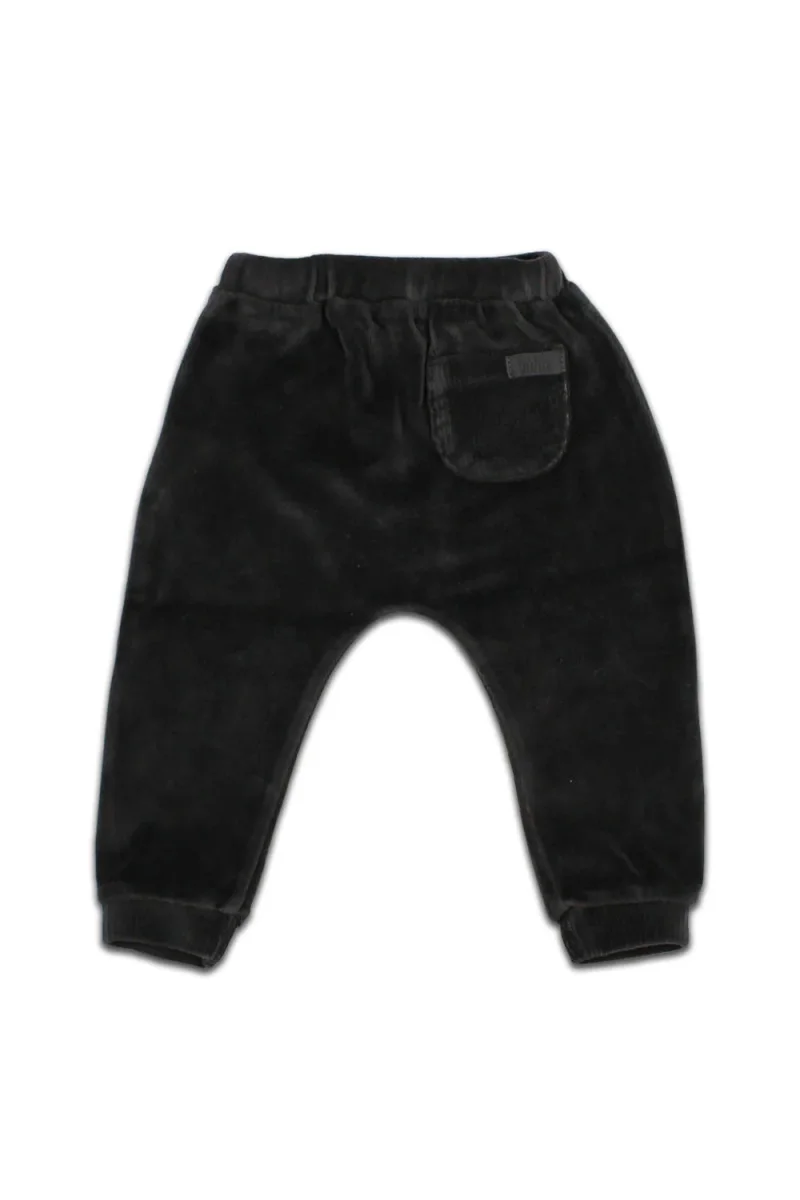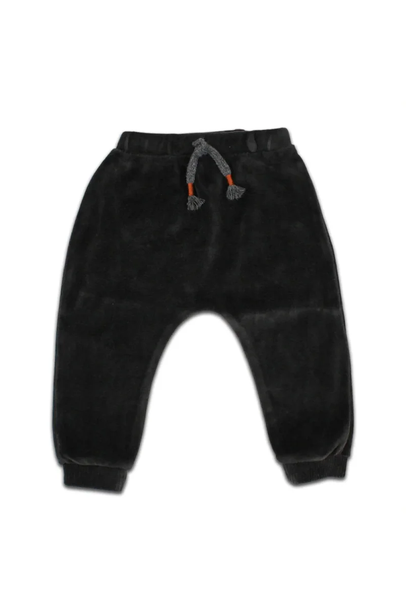 Pantalon en velours. Taille et chevilles élastiques. Poche arrière. Lien décoratif en contraste. Toucher doux.
