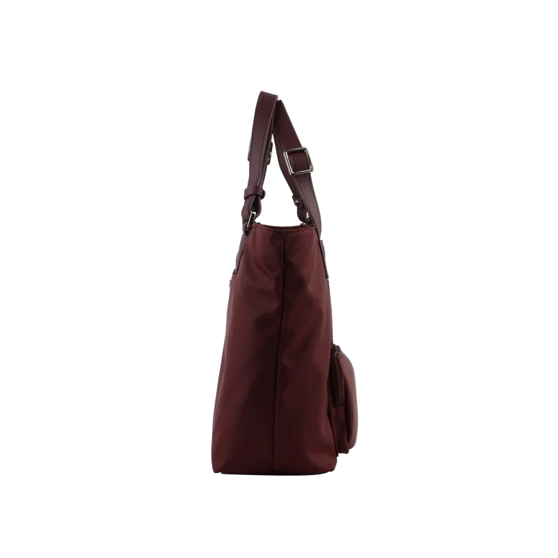 Conçu en toile garnie cuir, ce cabas allie légèreté et robustesse. Sa couleur bordeaux riche et élégante s’adapte à toutes les tenues, que ce soit pour une journée au bureau ou une sortie entre amis.