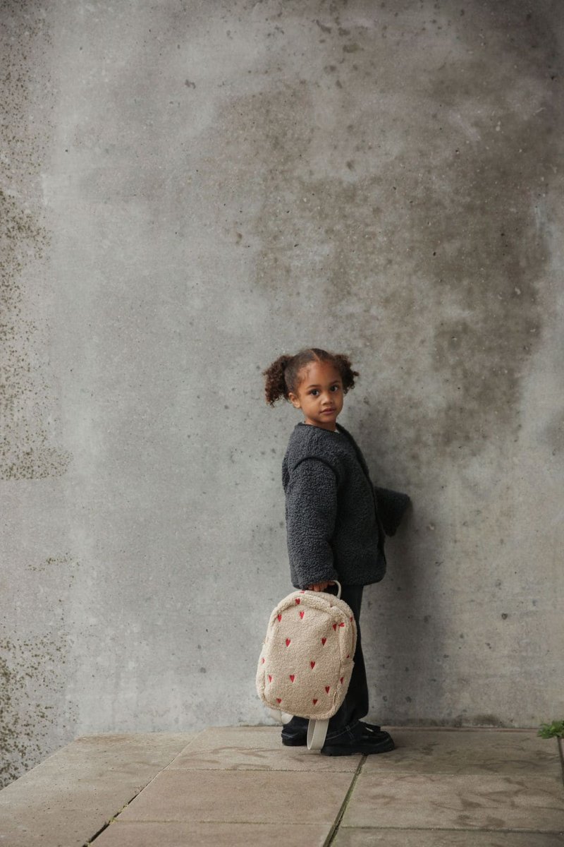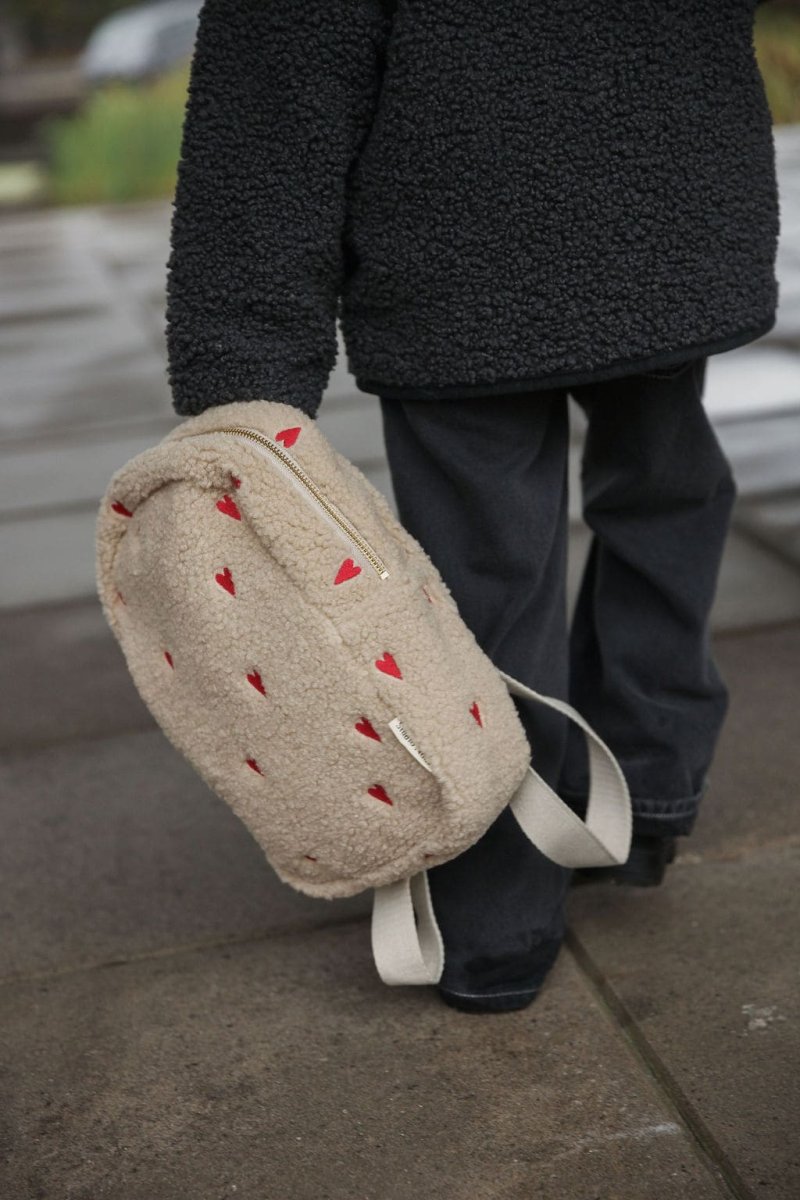 Petit sac à dos enfant Teddy coeurs | Ecru – Studio Noos