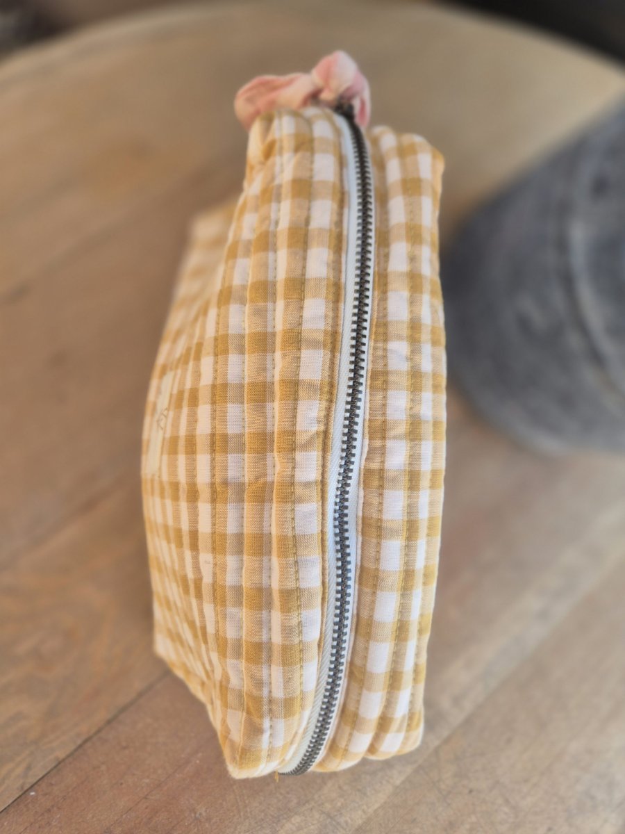 La petite trousse Ninon séduit par son délicat imprimé vichy et son tissu matelassé quilté, réalisé selon une technique traditionnelle indienne. Son design raffiné et son toucher doux en font un accessoire à la fois élégant et pratique au quotidien.