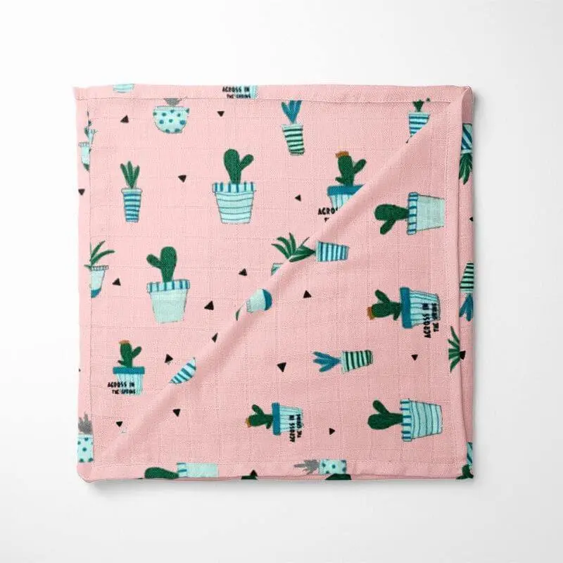 Transform your nursery into a playful desert oasis with our Pink Cactus Organic Cotton Baby Blanket. This whimsical design features adorable blue and green cacti in striped pots against a soothing pink background – the perfect blend of fun and comfort for your precious little one.
