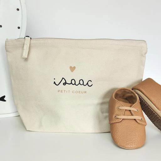 Une jolie pochette très pratique à personnaliser avec le texte de votre choix ! Cette pochette personnalisée se glissera facilement dans un sac. Dans l’onglet « Prénom de l’enfant » merci d’indiquer le texte de votre choix :Exemple : Adam p’tit coeur Si vous souhaitez le motif d’une autre couleur merci de le préciser :Exemple : Adam […]
