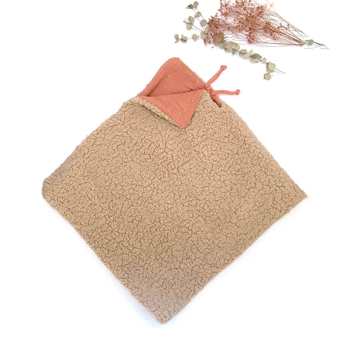 Poncho Evolutif Double-Gaze Rose Marsala & Sherpa Ourson