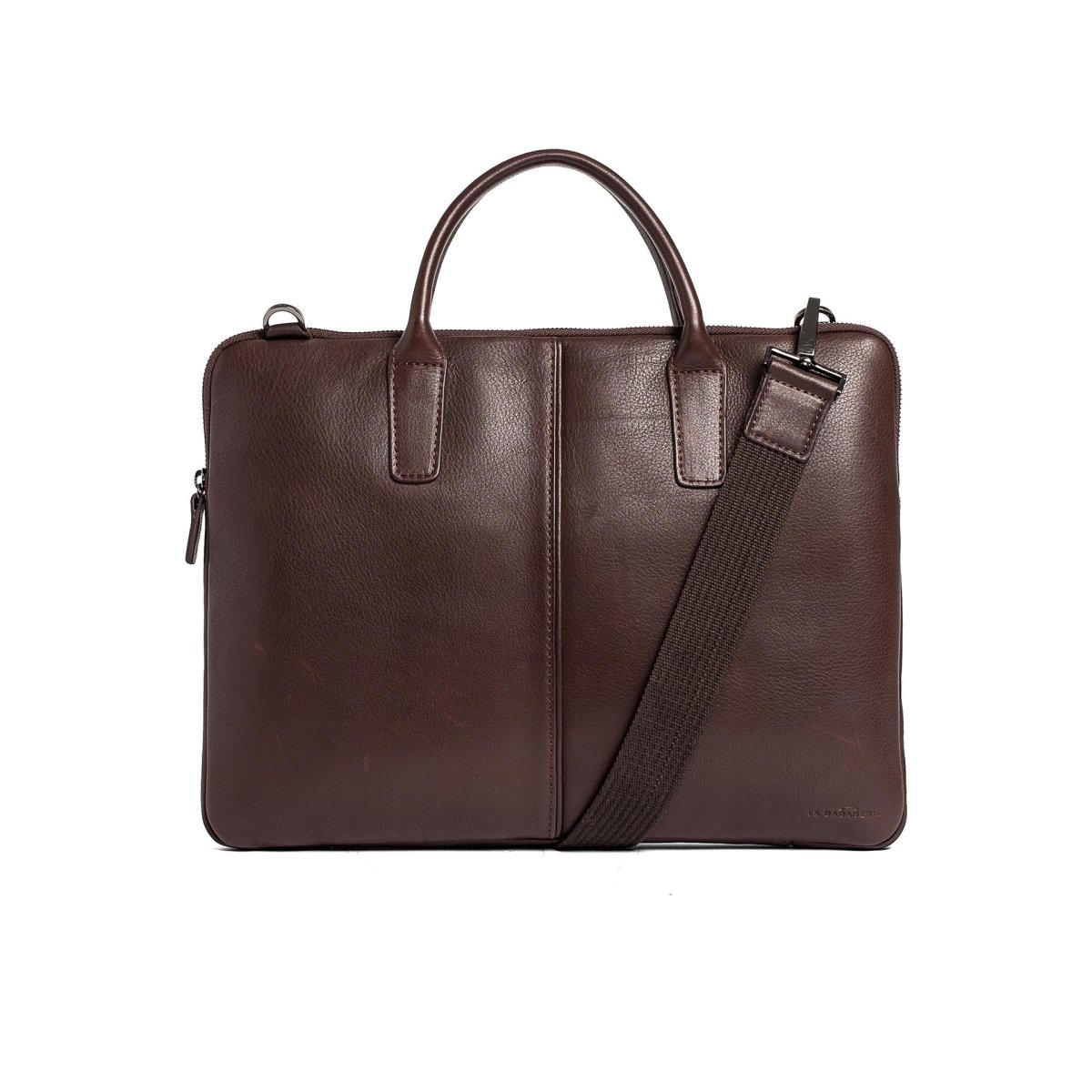 Ce porte-documents structuré est réalisé à partir de cuir de vachette pour un look intemporel. Le sac comprend un compartiment pour ordinateur portable 13″, des poches pratiques et une bandoulière réglable et amovible. La poignée rigide aux détails finition argent, le rendant idéal pour le trajet quotidien.