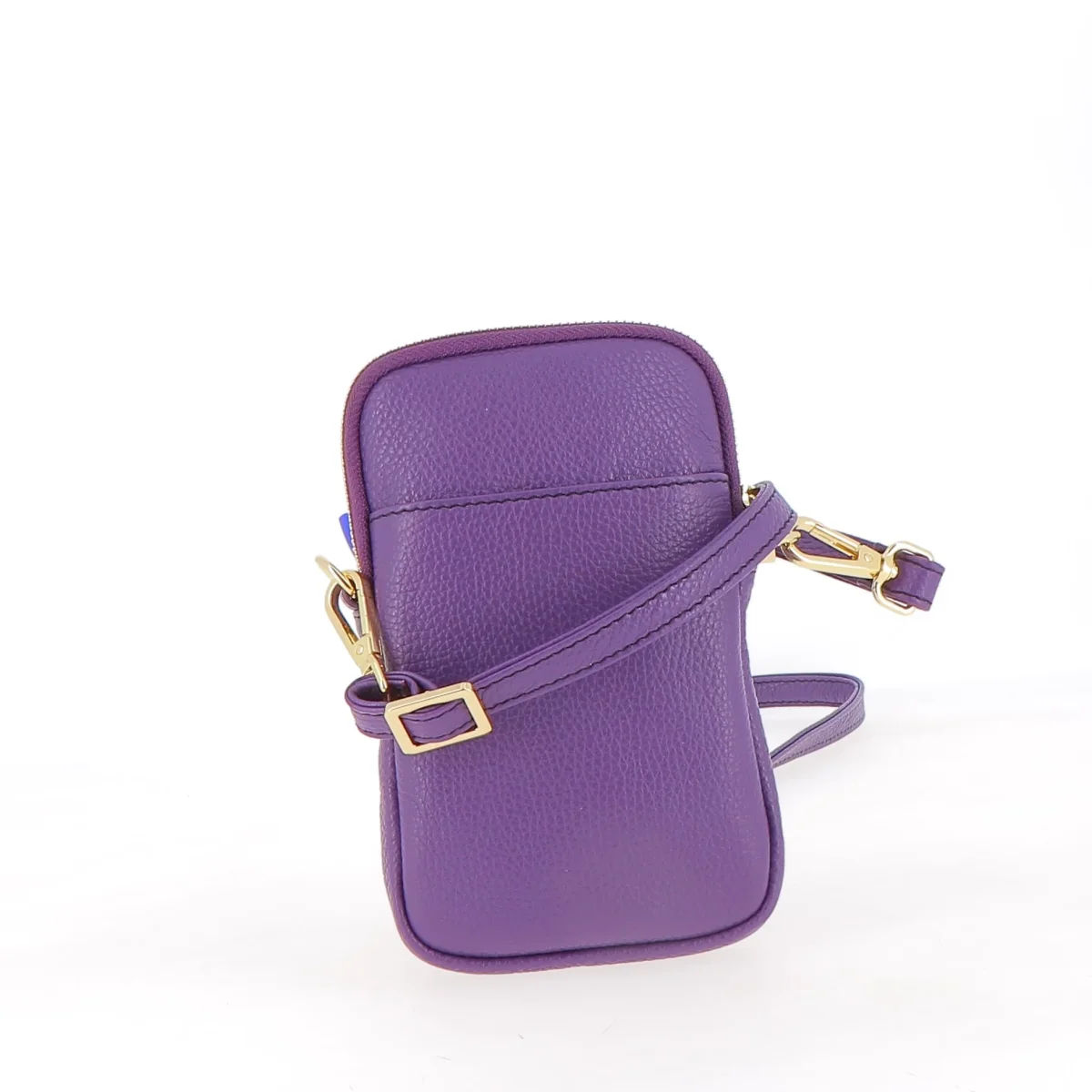 Confectionné dans un cuir de vachette grainé, ce sac téléphone de petite taille va devenir l’indispensable de votre quotidien. Léger et porté cross body grâce à sa bandoulière agrémenté d’une fermeture zippée, vous accédez rapidement à votre smartphone et à votre carte bleue grâce au porte carte intérieur. Il dispose d ‘une poche ouverte au dos.