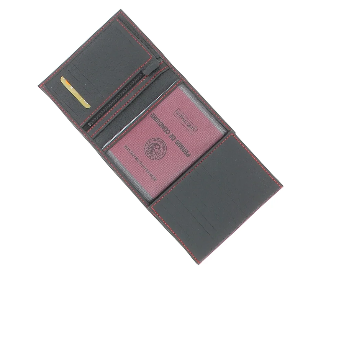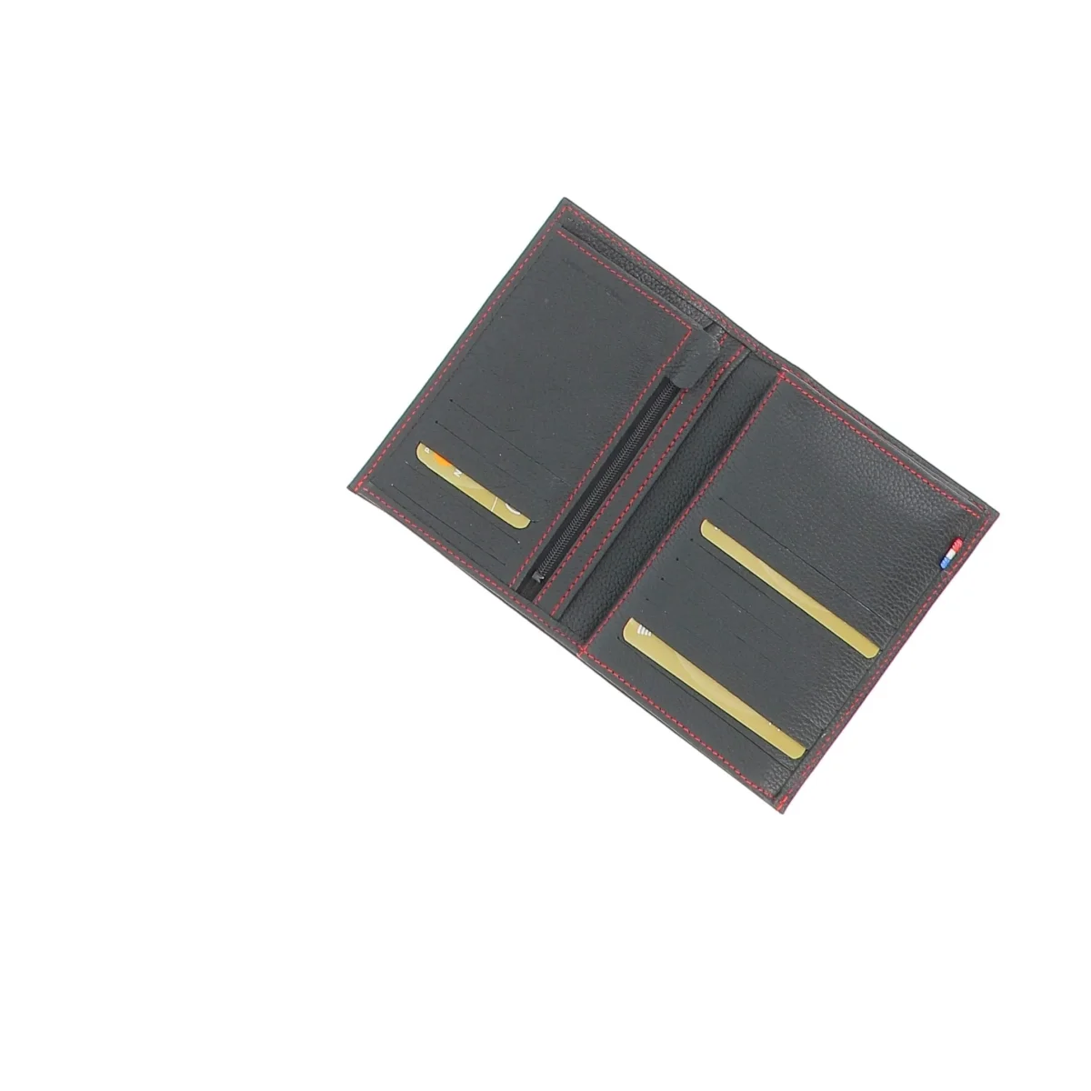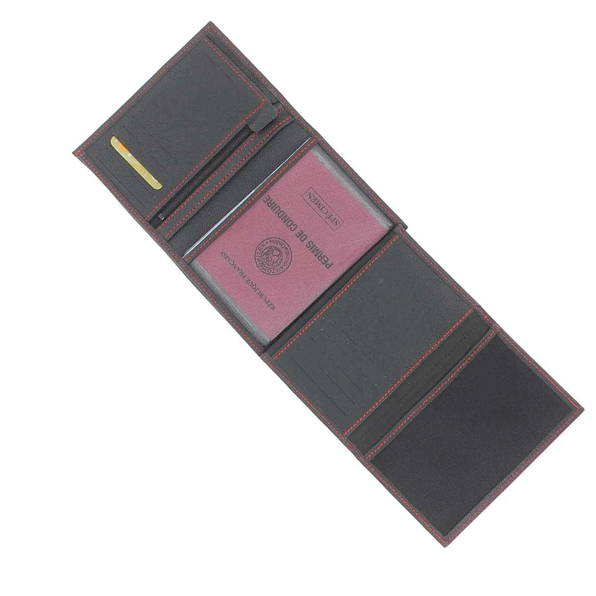 Très pratique, il se déplie de façon classique et fait apparaître ses premiers volets, composés d’une poche zippée pour monnaie sur la gauche. Il est ensuite possible de déplier à nouveau le volet de droite pour découvrir ses nombreux équipements complémentaires : une pochette transparente fixe, ainsi qu’une autre amovible, parfaite pour accueillir votre permis de conduire par exemple. Deux emplacements pour vos billets et papiers sont disponibles. Ce portefeuille est conçu dans un cuir de vachette fait en France. Il se glisse dans votre poche ou dans votre sac de façon aisée.