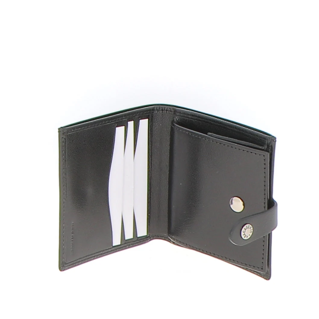 Ce portefeuille fait en France en cuir de chèvre vous comblera avec ses multiples rangements. C’est un accessoire très complet qui vous permettra une organisation optimale de toutes vos cartes, votre monnaie ainsi que tous vos papiers importants et billets. Son compartiment principal muni de son bouton pression ouvre un emplacements cartes et une poche monnaie.
