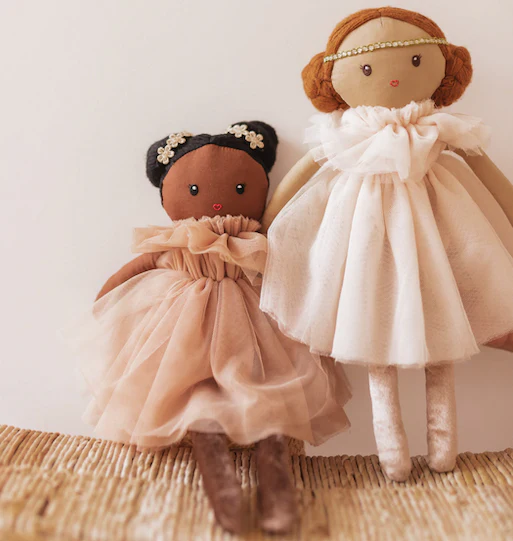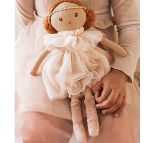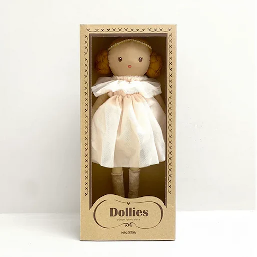 Les jolies poupées souples de la marque Mrs Ertha sont entièrement fabriquées à la main. Les vêtements sont en tulle et peuvent être retirés. Caractéristiques : 100% coton. Taille poupée : 35 x 14 cm Dimensions boite carton : 16 x 7 x 37 cm Marque : Mrs Ertha