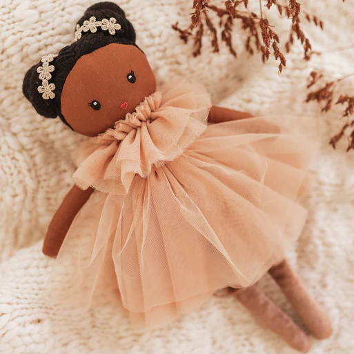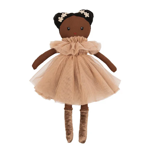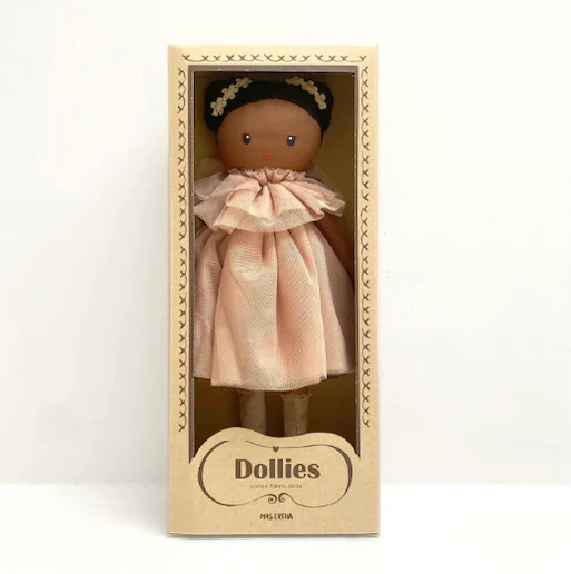 Les jolies poupées souples de la marque Mrs Ertha sont entièrement fabriquées à la main. Les vêtements sont en tulle et peuvent être retirés. Caractéristiques : 100% coton. Taille poupée : 35 x 14 cm Dimensions boite carton : 16 x 7 x 37 cm Marque : Mrs Ertha