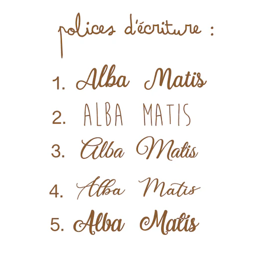 Le prénom et motif seront notés en blanc au milieu sur le devant.