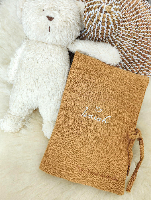 Voici un joli protège carnet de santé en double gaze de coton légèrement rembourré.– Rabats à l’intérieur – Fermeture par liens à nouer – Broderie « Mon carnet de santé » sur le devant en bas.– Lavage à la main ou en machine mode délicat/ Personnalisation par flocage thermique professionnel . Le prénom et motif seront notés […]