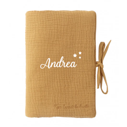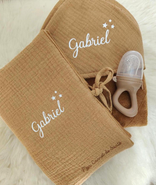 Voici un joli protège carnet de santé en double gaze de coton légèrement rembourré.