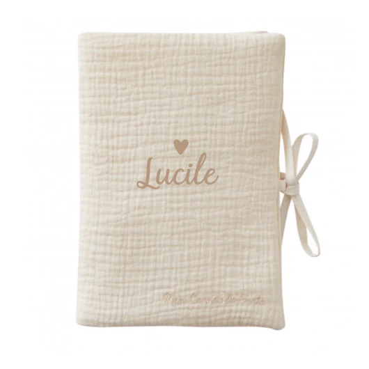 Voici un joli protège carnet de santé matelassé en double gaze de coton.– Rabats à l’intérieur – Fermeture par liens à nouer – Broderie « Mon carnet de santé » sur le devant en bas.– Lavage à la main ou en machine mode délicat/ Personnalisation par flocage thermique professionnel . Couleur du marquage au choix : taupe […]