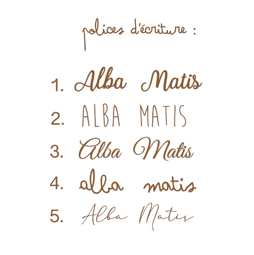Le prénom et motif seront notés en blanc au milieu sur le devant.