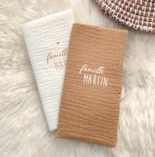 Protège livret de famille en gaze de coton matelassé entièrement confectionné à la main dans nos ateliers. Personnalisation possible avec le texte de votre choix. Coloris du marquage : marquage blanc sur le modèle caramel et taupe sur le modèle ivoire. Possibilité de rajouter un cœur au dessus du texte. – tissu certifié oeko tex– […]