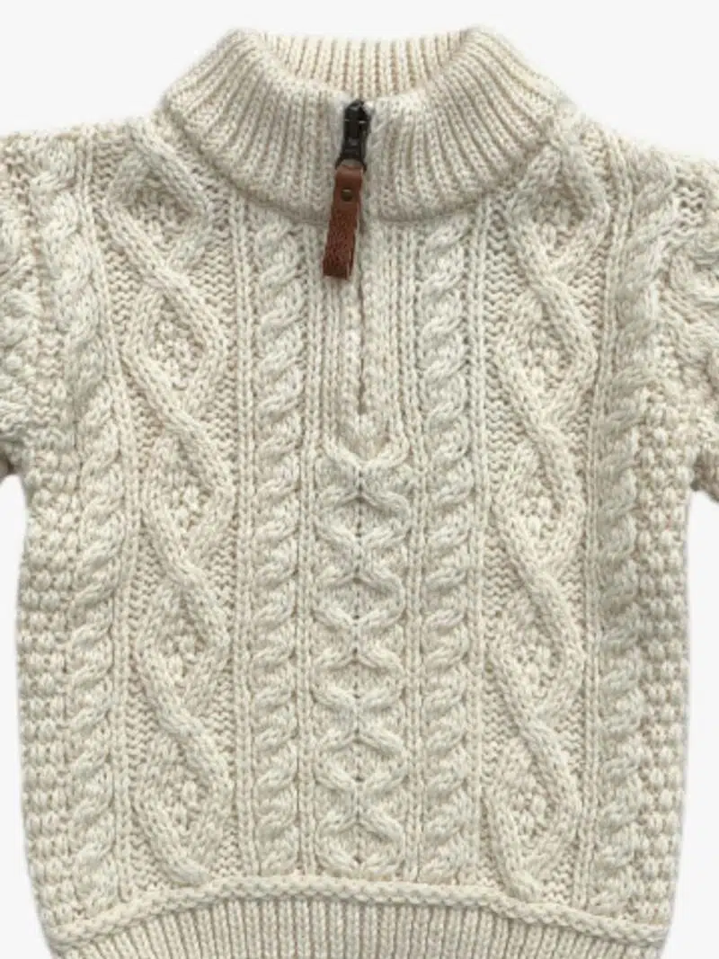 Confectionné avec soin par les artisans de West End Knitwear, ce pull reflète l’héritage irlandais, où chaque pièce est le fruit d’un savoir-faire transmis depuis plusieurs générations. En optant pour ce pull bébé à zip en laine mérinos couleur laine naturelle, vous choisissez un vêtement de qualité, doux, durable et conçu avec passion. Ce pull est le choix parfait pour garder votre bébé au chaud tout en lui offrant un style élégant et intemporel.