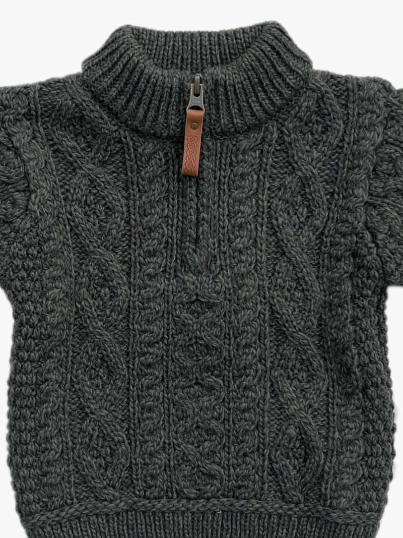 Chaque pull est fabriqué en Irlande, dans les ateliers de West End Knitwear, où la tradition et l’artisanat se transmettent de génération en génération. En choisissant ce pull, vous offrez à votre bébé non seulement une pièce confortable, mais aussi un produit d’une qualité exceptionnelle, conçu avec soin et respect des traditions artisanales irlandaises. Ce pull bébé vert à zip en laine mérinos est l’alliance parfaite entre style, confort et durabilité.