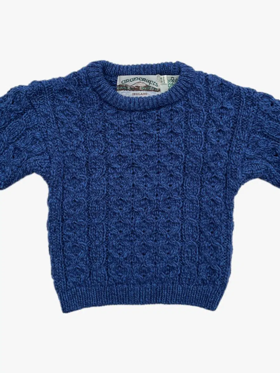 Fabriqué dans les ateliers irlandais de West End Knitwear, ce pull traditionnel est le fruit d’un savoir-faire artisanal transmis de génération en génération. Chaque pièce est tricotée avec précision pour garantir une durabilité exceptionnelle, tout en conservant une souplesse qui permet à votre bébé de bouger librement. Ce pull bleu est parfait pour les journées d’hiver ou de mi-saison, en offrant à la fois confort et protection contre le froid.
