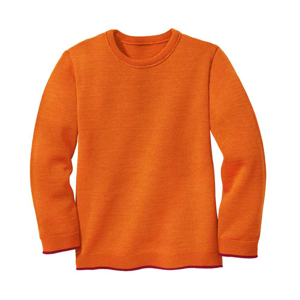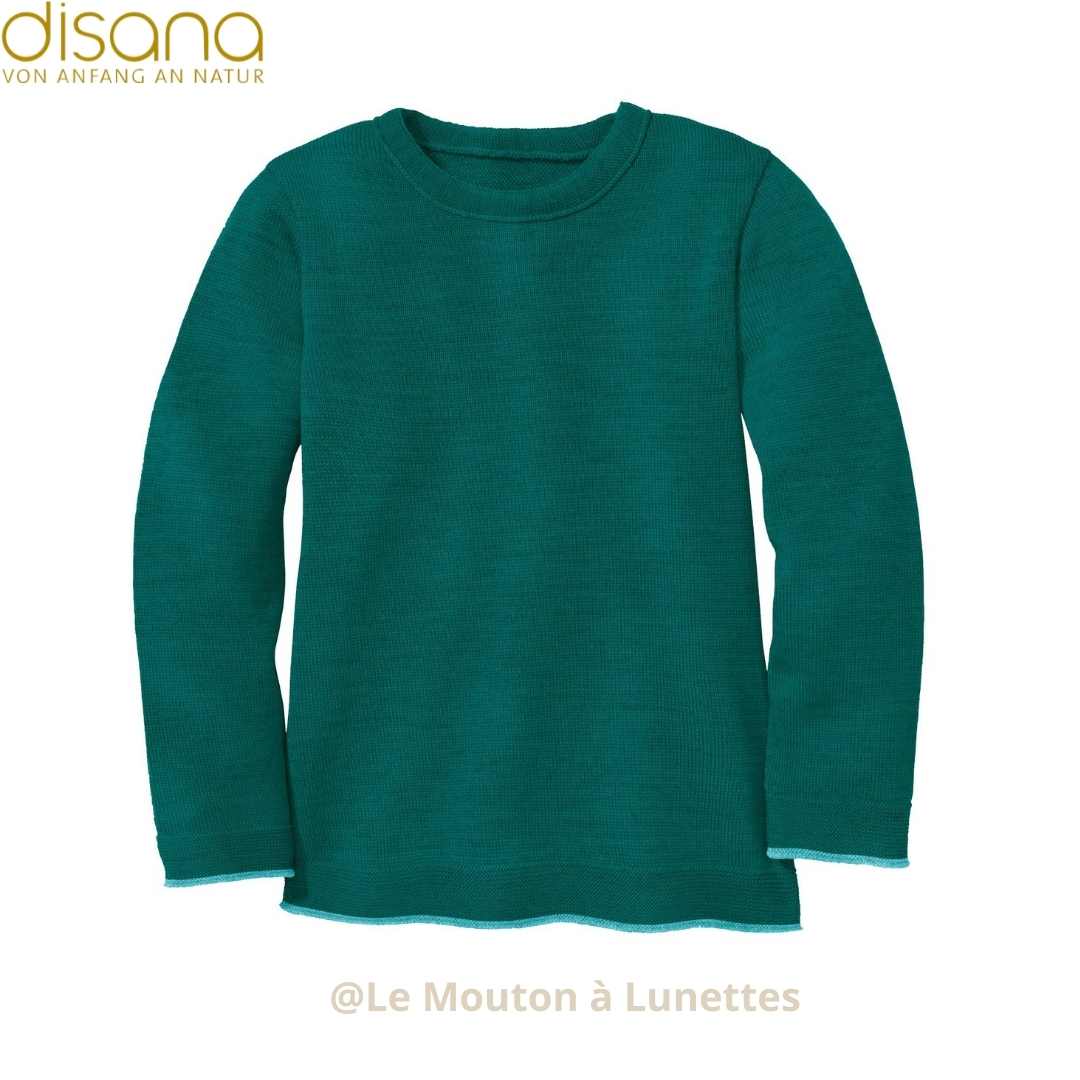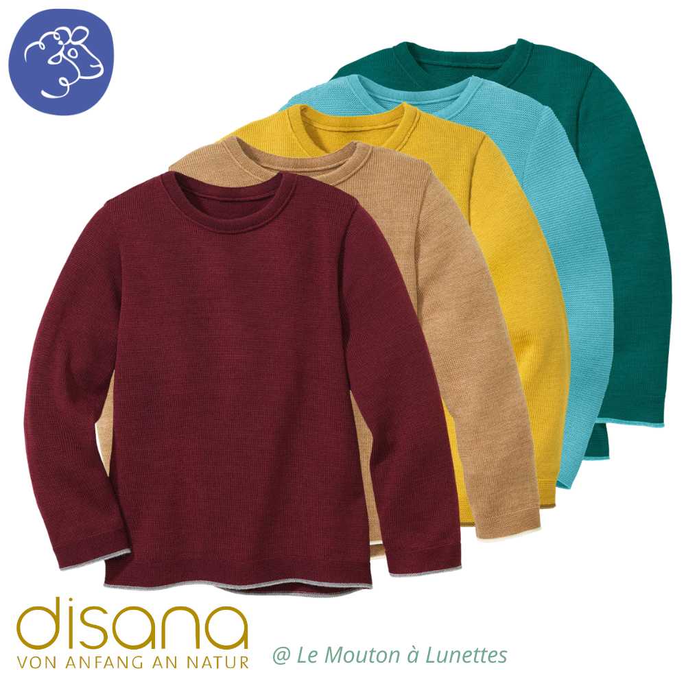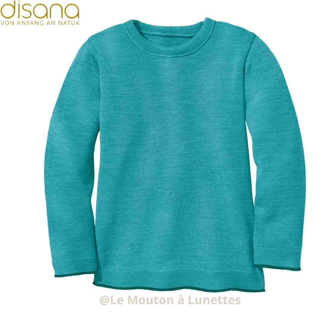 Un pull pour enfant en laine mérinos biologique tricoté de la marque allemande Disana. Un tricot lisse et de qualité à la coupe simple et indémodable pour les petits.