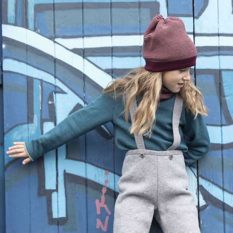 Pull Disana pour enfant tricoté 100% pure laine vierge mérinos biologique, labellisé GOTS et IVN BEST. Fabriqué en Allemagne de A à Z dans le propre atelier de l’entreprise.