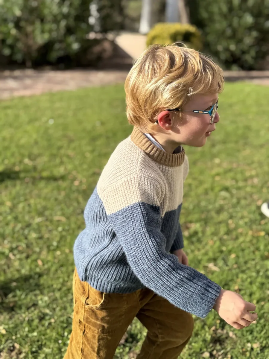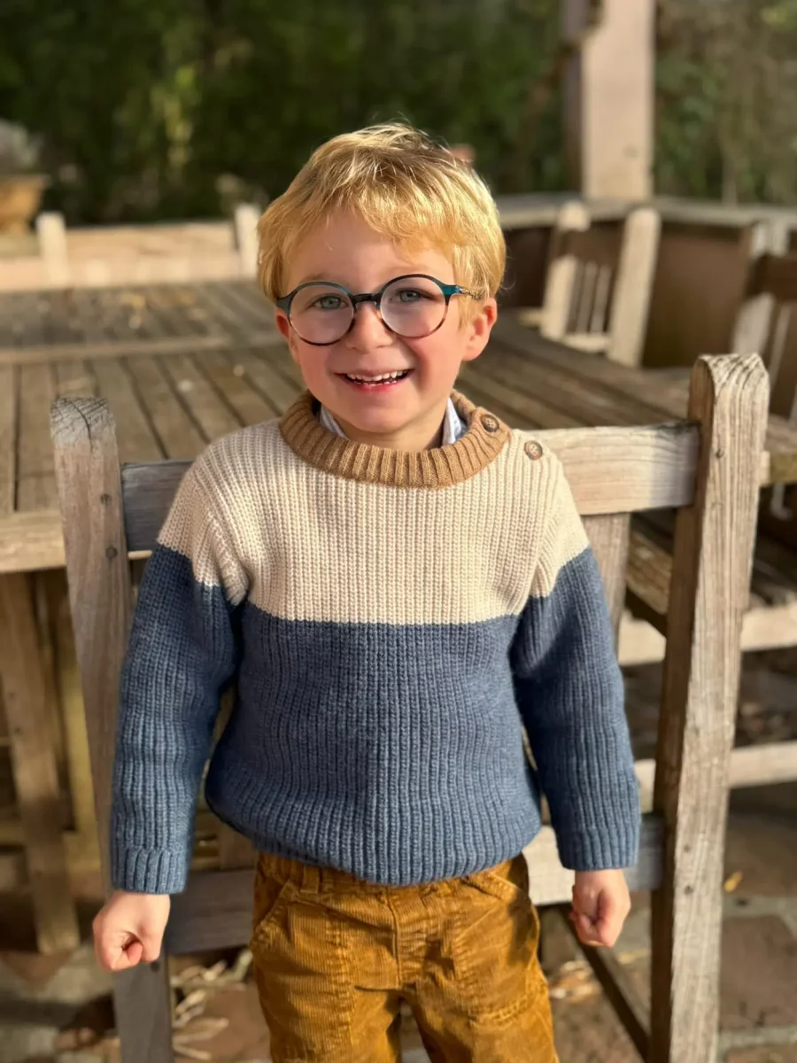 Tricoté dans une maille contenant de la laine, ce pull offre une chaleur agréable sans être trop épais, parfait pour les journées fraîches d’automne ou les matins encore frileux du printemps. Sa maille souple et douce respecte la peau sensible de votre enfant tout en lui permettant de bouger librement pour jouer, courir ou partir en balade avec vous, sans jamais être gêné dans ses mouvements.