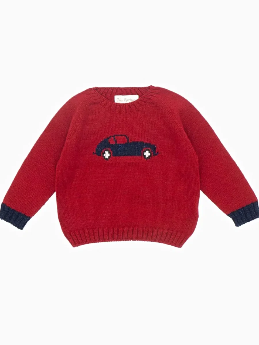 Avec notre pull garçon à motif de voiture, chaque journée devient une nouvelle aventure à toute vitesse !