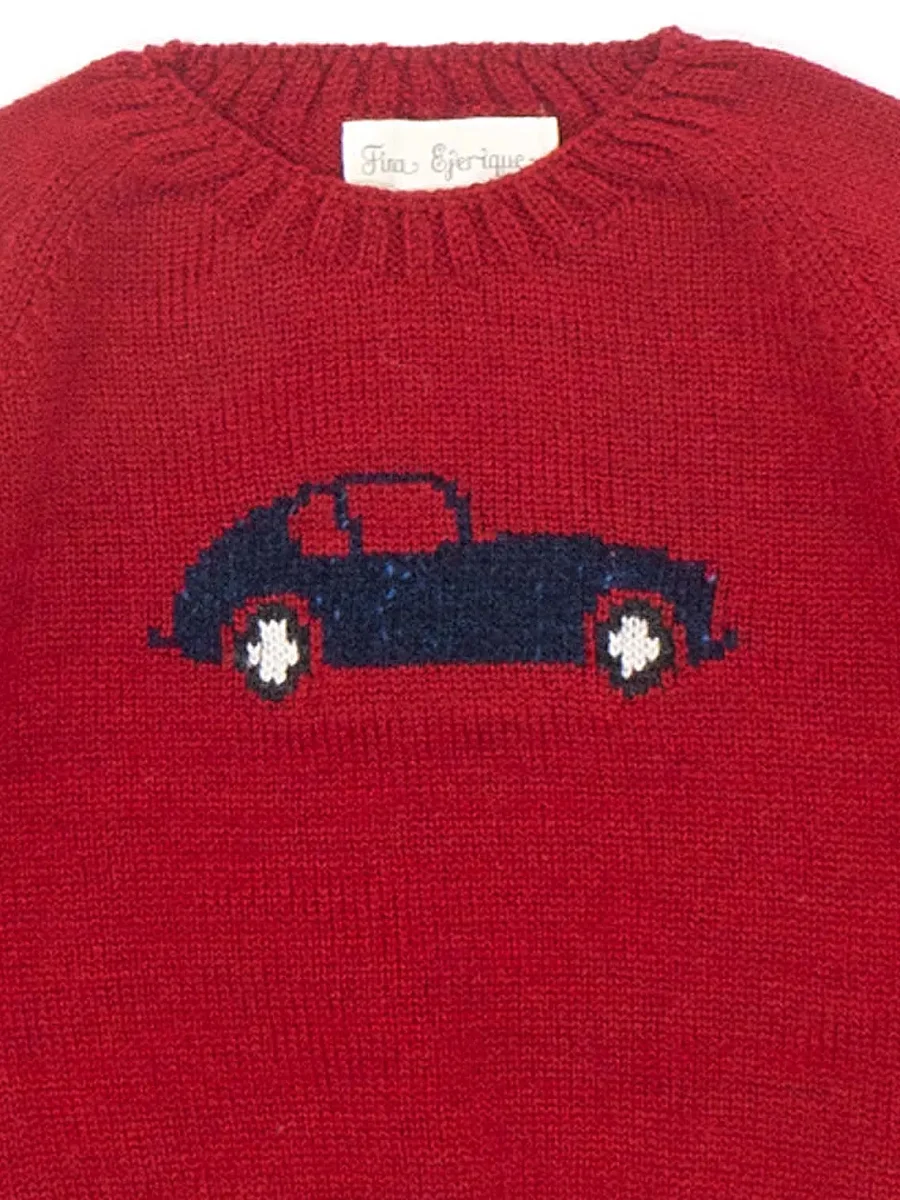 Pull à encolure ronde Motif de voiture au centre Fabriqué en Espagne Ce pull taille normalement. Choisissez la taille habituelle.