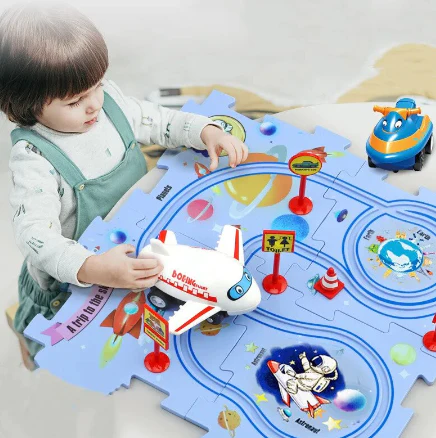 Le puzzle circuit incite les enfants à créer de nouveaux chemins pour la voiture, contribuant ainsi à leur coordination main-œil.