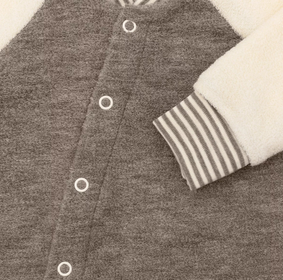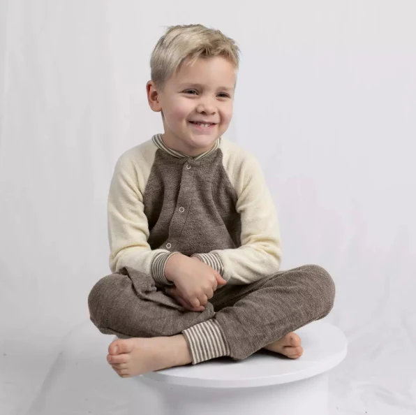 Pyjama 1 pièce sans pieds, tout chaud et moelleux : en tissu éponge bouclette 100% laine vierge biologique, c’est le pyjama parfait pour les petits, pour passer de bonnes nuits !