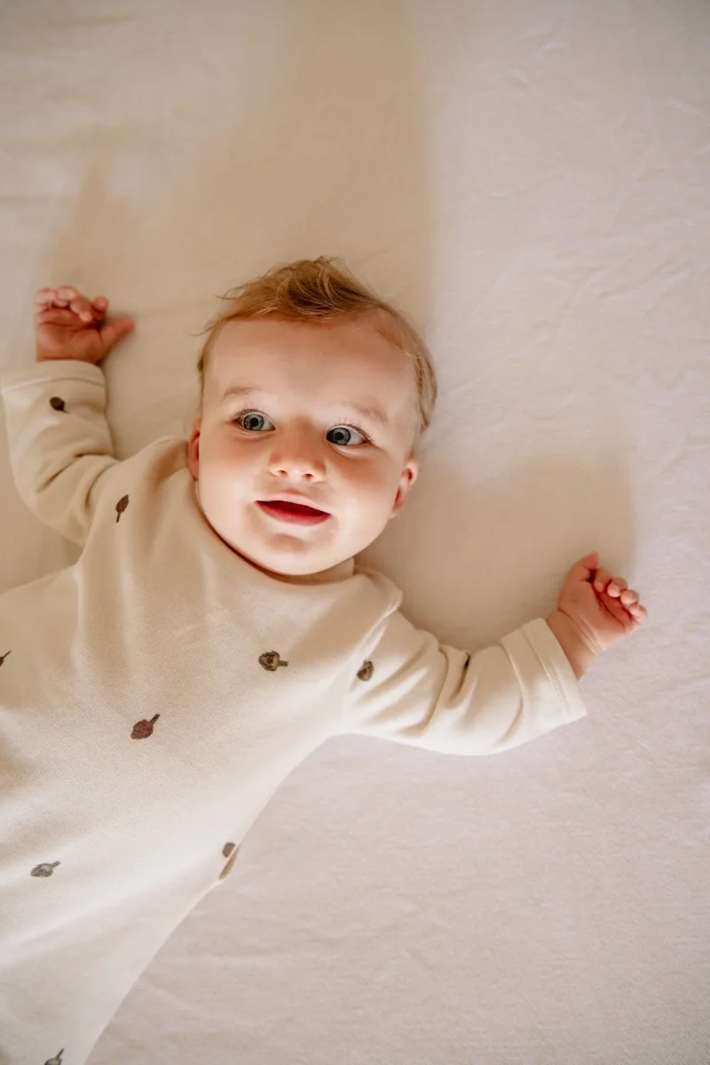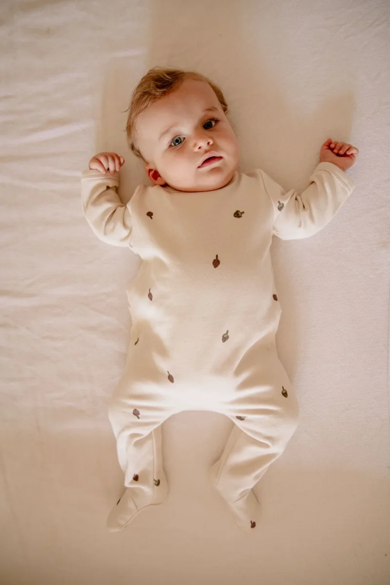 Pyjama une pièce à pieds pour dormir au chaud. En molleton de coton biologique, sa douceur et son confort sont absolus.