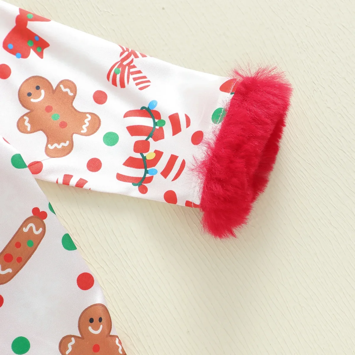 Les poignets et chevilles en fausse fourrure ajoutent une touche moelleuse et élégante, parfaite pour les photos de Noël ou les moments cocooning en famille.