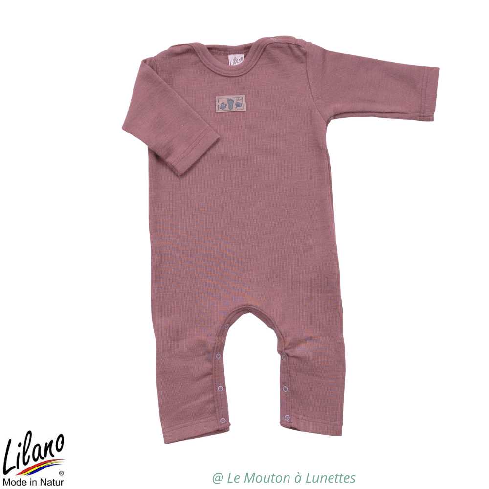 Ce pyjama Lilano a des boutons-pressions aux épaules ainsi que sur tout le pourtour de l’entrejambe : ainsi il peut s’enfiler très facilement par la tête et le change est facilité.