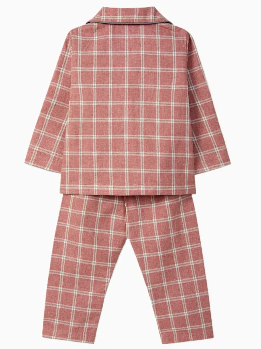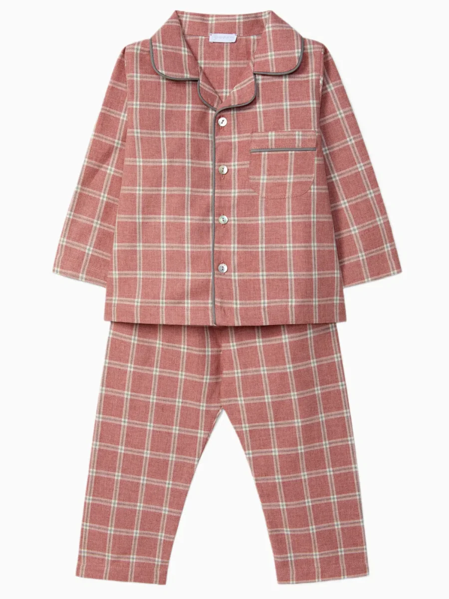 Un pyjama à carreaux roses doux et élégant pour accompagner les nuits de votre enfant avec confort et raffinement, fidèle à l’univers de Voyage de la Baleine.