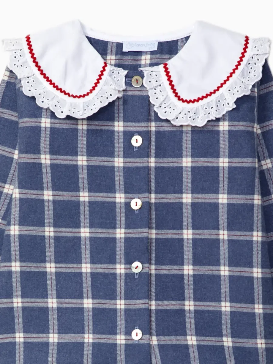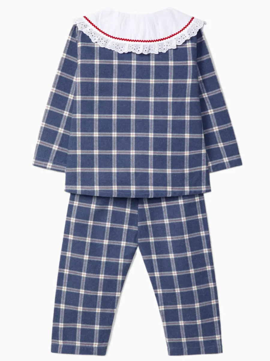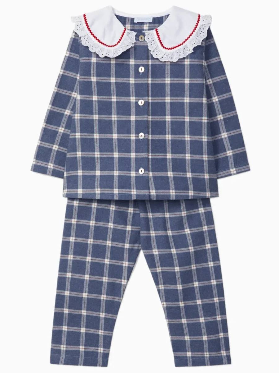 Pyjama fille carreaux et broderies anglaises – Bleu