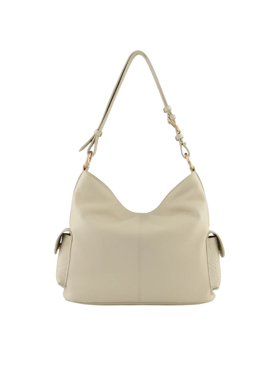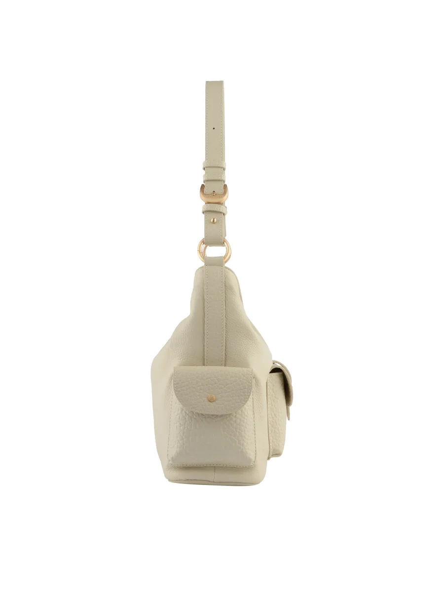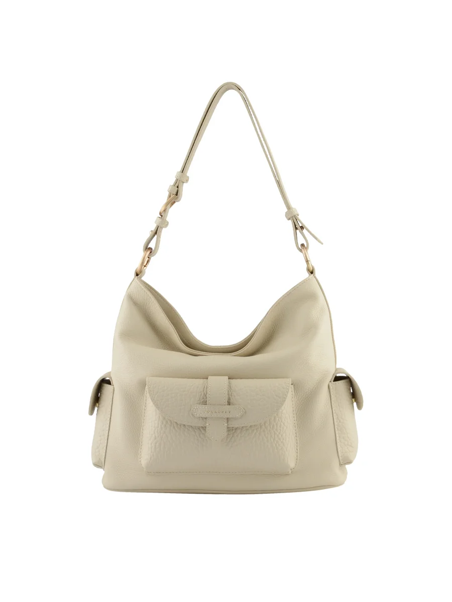 Son design se distingue par ses poches extérieures à rabat, signature fonctionnelle et esthétique de la ligne, offrant un accès rapide aux essentiels tout en affirmant son caractère. Décliné en deux portés — main ou épaule selon le modèle