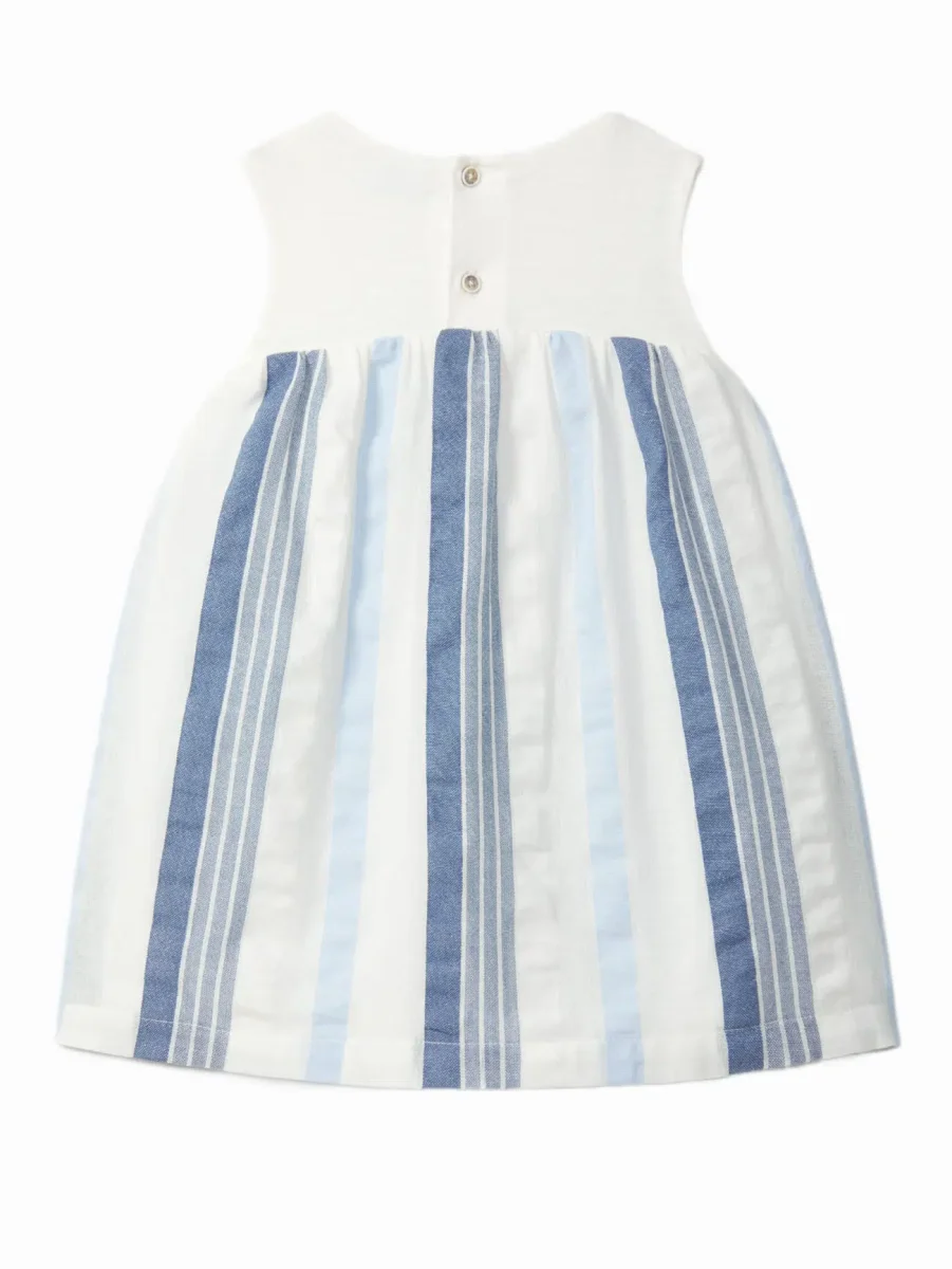 Fermée par des boutons au dos 100% coton Assortie à la Chemise garçon à rayures texturées – Blanc/bleu Fabriquée au Portugal Cette robe taille normalement. Choisissez la taille habituelle.