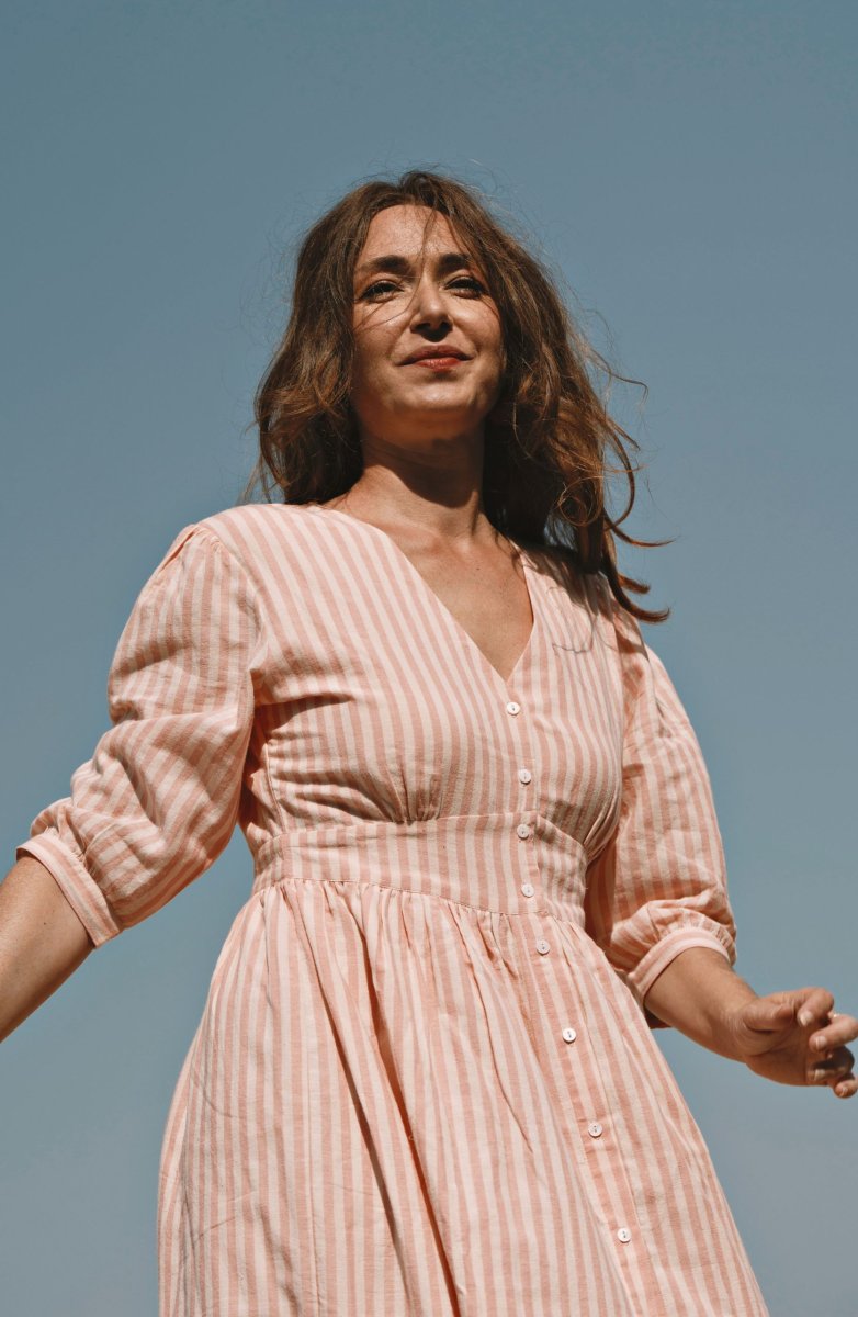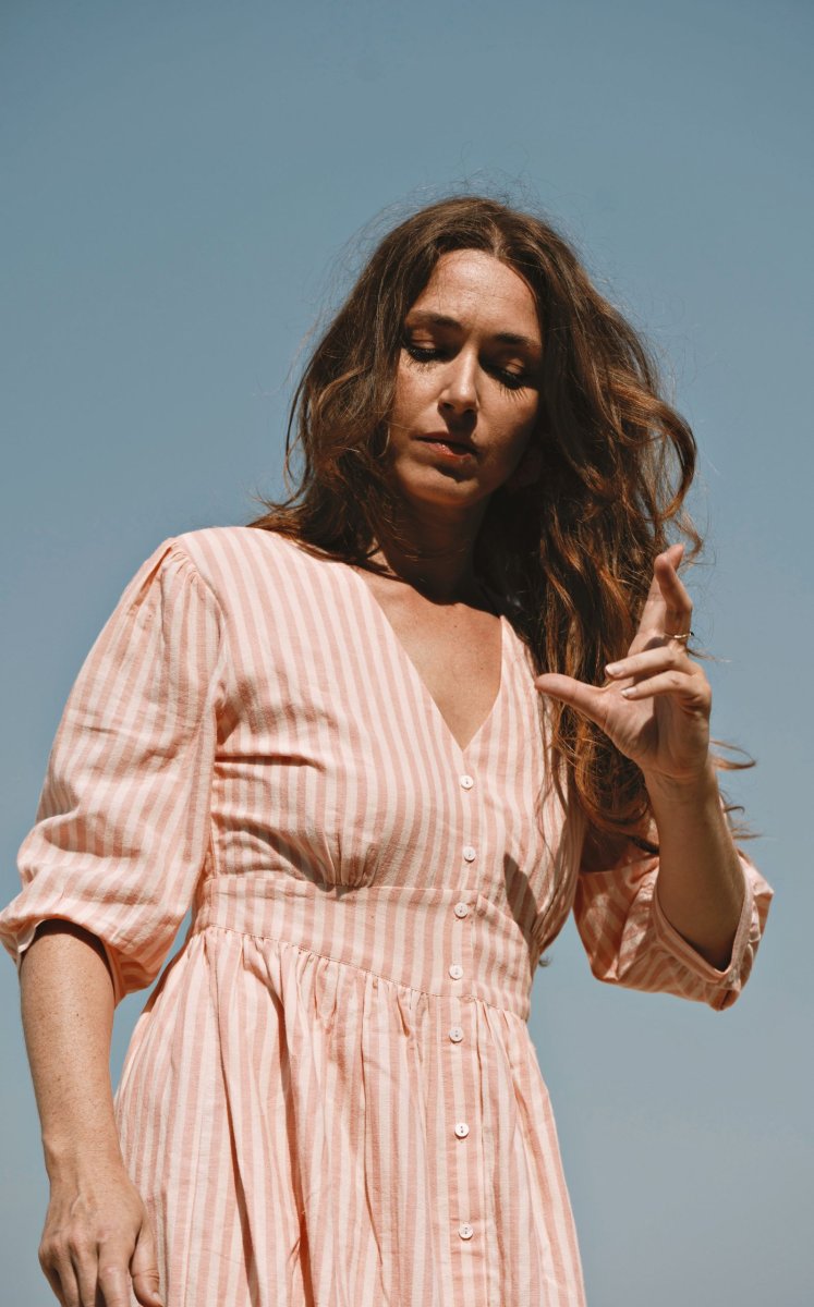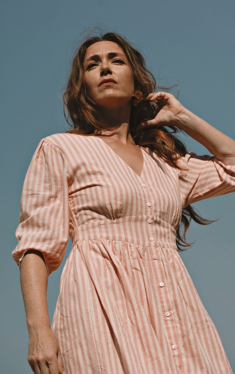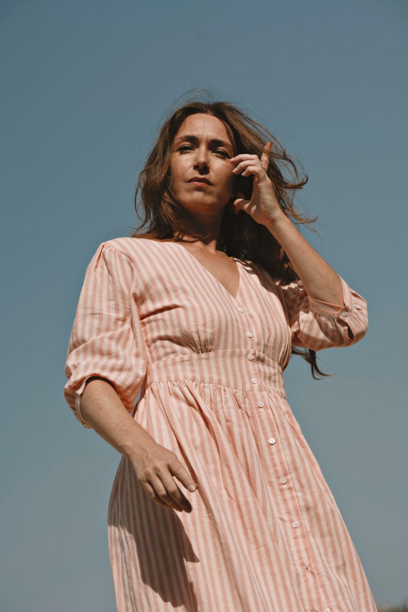 La robe Appoline Rayée Rose séduit par son allure fraîche et lumineuse. Son motif rayé rose apporte une touche délicate et intemporelle, parfaite pour la saison estivale.