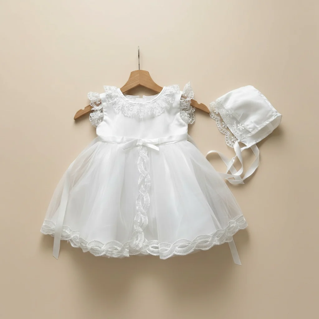 Robe de Baptême Blanche – Élégance et Raffinement pour Bébé