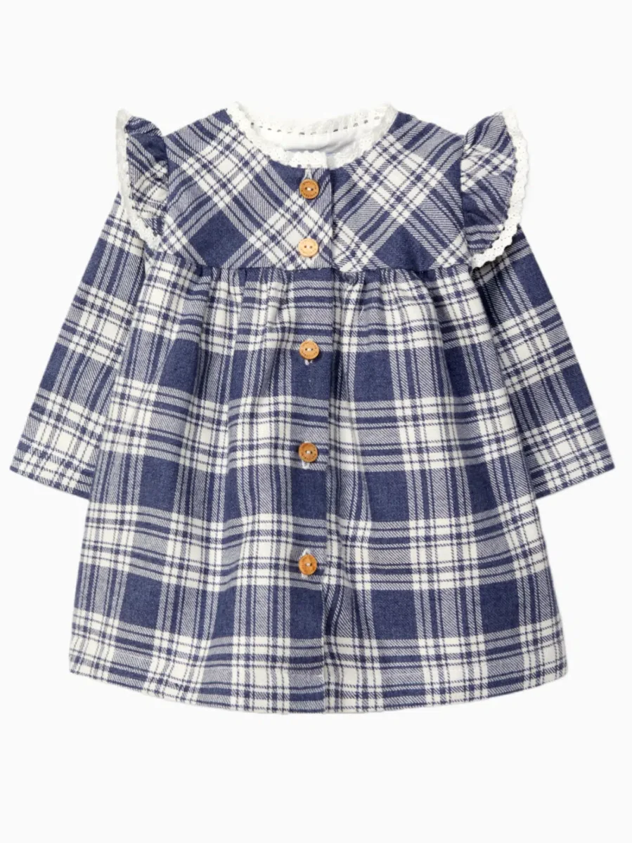 Notre robe bébé fille à carreaux bleu et blanc est confectionnée dans une flanelle douce et souple, composée de 50 % lyocell et 50 % coton, pour garantir confort et élégance lors des promenades ou des journées paisibles à la maison. Sa coupe pensée pour les bébés permet une grande liberté de mouvement, tout en assurant une allure soignée en toutes circonstances.
