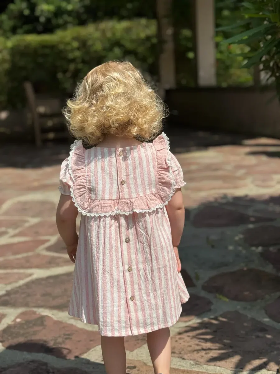 Avec son esprit lumineux et enjoué, cette robe bébé fille rayée rose incarne l’équilibre parfait entre tradition et modernité. C’est une pièce incontournable pour créer des souvenirs d’enfance remplis de douceur et de joie. Facile à assortir avec des sandales ou des petits chaussons crème de notre collection, elle s’adapte à toutes les occasions estivales.
